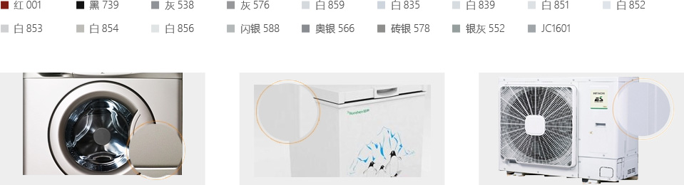 广泛用于冰箱、冷柜、洗衣机、空调为代表的冰洗家电行业,色卡如下: